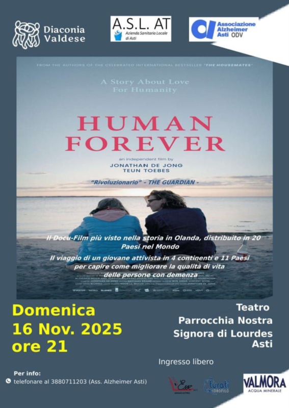 13/11/2025 Domenica 16 novembre proiezione del film documentario "Human Forever" Il regista olandese Jonathan De Jong racconta nel film documentario “HUMAN FOREVER” come nel mondo è affrontato il tema della cura e dell’assistenza alle persone affette da demenza.Il... |