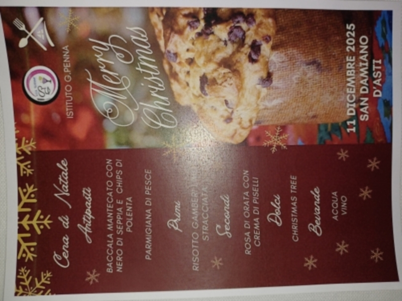Giovedì 11 dicembre si è svolta la tradizionale cena di Natale presso il Foro Boario di San Damiano. A preparare la cena e servire i piatti si sono impegnati gli studenti e gli insegnanti dell'Istituto Penna di Asti, sezione di San Damiano dedicata alla professione Alberghiera. Con l'Ist. Penna, ormai, la ns. associazione vanta una solida collaborazione attraverso anche la distribuzione di piantine coltivate nelle serre oppure nella distribuzione dei pacchetti di biscotti prodotti dai pasticcieri della scuola.