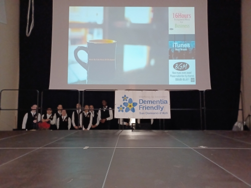 Durante una pausa nella distribuzione dei vari piatti, tutti appetitosi e ben serviti, abbiamo cercato di dare un piccolo spunto di riflessione ai presenti spiegando il percorso della D.F.C. e proiettando il piccolo video "Una comunità accogliente con le demenze" ( link: https://www.youtube.com/watch?v=L3oxBa1BHxY) . Filmato che ha interessato e colpito le cento prersone presenti.
